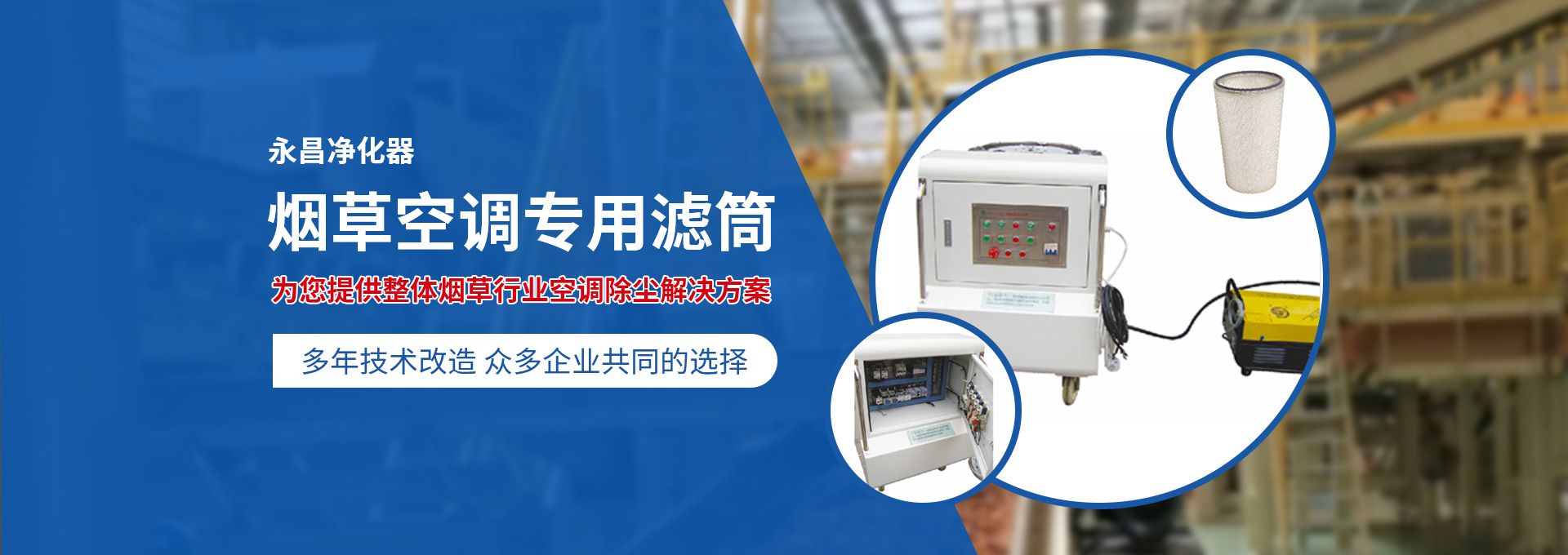 新鄉(xiāng)市永昌凈化器有限公司是生產(chǎn)煙草行業(yè)空調(diào)除塵專用濾筒的企業(yè)。注冊資金1000萬元。已通過ISO9001國際質(zhì)量管理體系認(rèn)證。對產(chǎn)品有嚴(yán)格的管理制度和售后服務(wù)。我公司以誠信、負(fù)責(zé)、守信譽(yù)、重質(zhì)量的精神所生產(chǎn)的產(chǎn)品,近幾年來在煙草行業(yè)受到廣泛應(yīng)用,并受到用戶的一致好評?! 囊痪啪潘哪暌詠頌闊煆S的空調(diào)設(shè)備服務(wù)。十幾年來,我們不斷走出去請進(jìn)來學(xué)習(xí)新技術(shù)。定期到用戶那里咨詢情況:互相交流,認(rèn)真聽取寶貴意見,不斷提高產(chǎn)品質(zhì)量。從經(jīng)濟(jì)和安全,方便的角度出發(fā),根據(jù)煙廠濕度大的生產(chǎn)環(huán)境和濾筒收集到的含酸堿、氧化劑的粉塵。在空調(diào)箱工作狀態(tài)下我們頂著巨大的風(fēng)壓危險在箱內(nèi)停留了幾分鐘,認(rèn)真查看濾筒工作情況,發(fā)現(xiàn)濾筒有并死狀態(tài),造成濾筒不過濾、不過風(fēng)、壓差高的現(xiàn)象。經(jīng)幾十次試驗(yàn)分析,在標(biāo)本兼治的原則下,有針對性的解決了這一問題?! ∥夜踞槍煆S制絲、卷接包、混絲間、儲絲房、冷卻床、梗膨化等不同的生產(chǎn)環(huán)境,